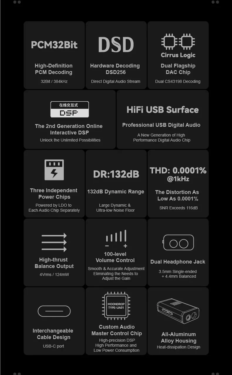 The Moondrop Dawn Pro 2 is the sophisticated successor to the acclaimed Dawn Pro, engineered for audiophiles who refuse to compromise on sound quality while on the move. Housed in a precision-milled, aviation-grade aluminum alloy chassis, this portable DAC/Amp combines a sleek, sandblasted aesthetic with a design optimized for heat dissipation and durability.