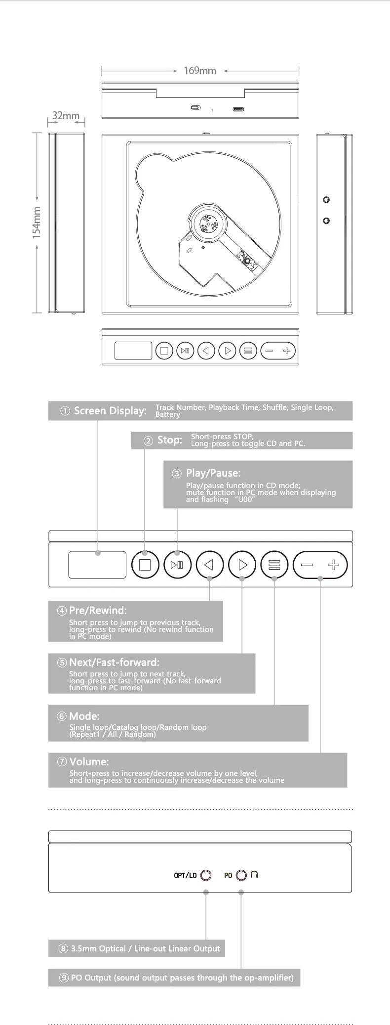 | Supported Disc Format | CD, CD-R, CD-RW |