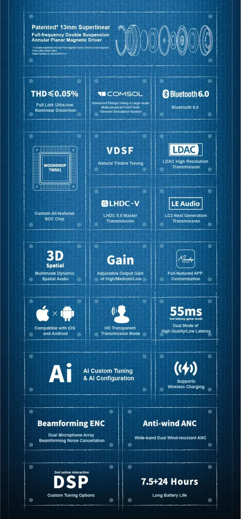 CUSTOM HIGH-PERFORMANCE AUDIO SOC CHIP MOONDROP TWS-01