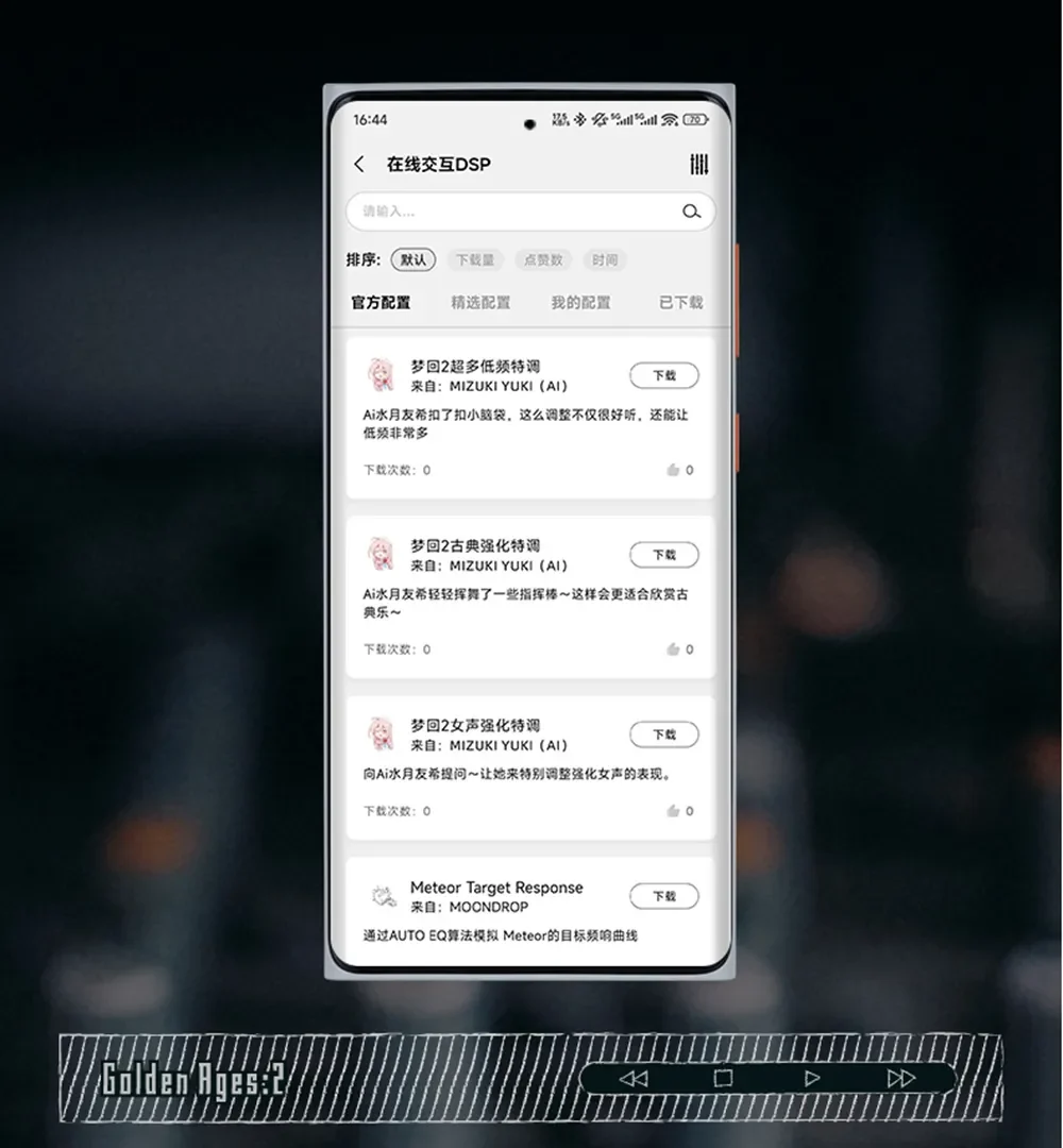 Users can upload their own tuning configurations and share them with others, or download tuning optimizations created by fellow users for various headphones, which can then be applied to the hardware of Golden Ages 2.