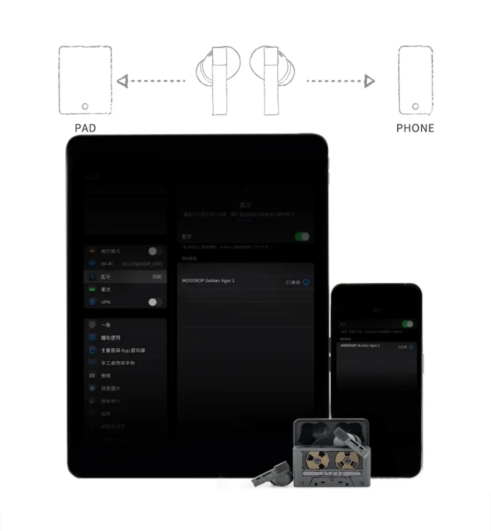 Golden Ages 2 allows easy switching of dual connection modes under ordinary Bluetooth (AAC/SBC). In addition to the music mode, users can switch to game mode by tapping the faceplate four times. In game mode, the signal transmission latency is as low as 55ms, providing a more satisfying game experience.