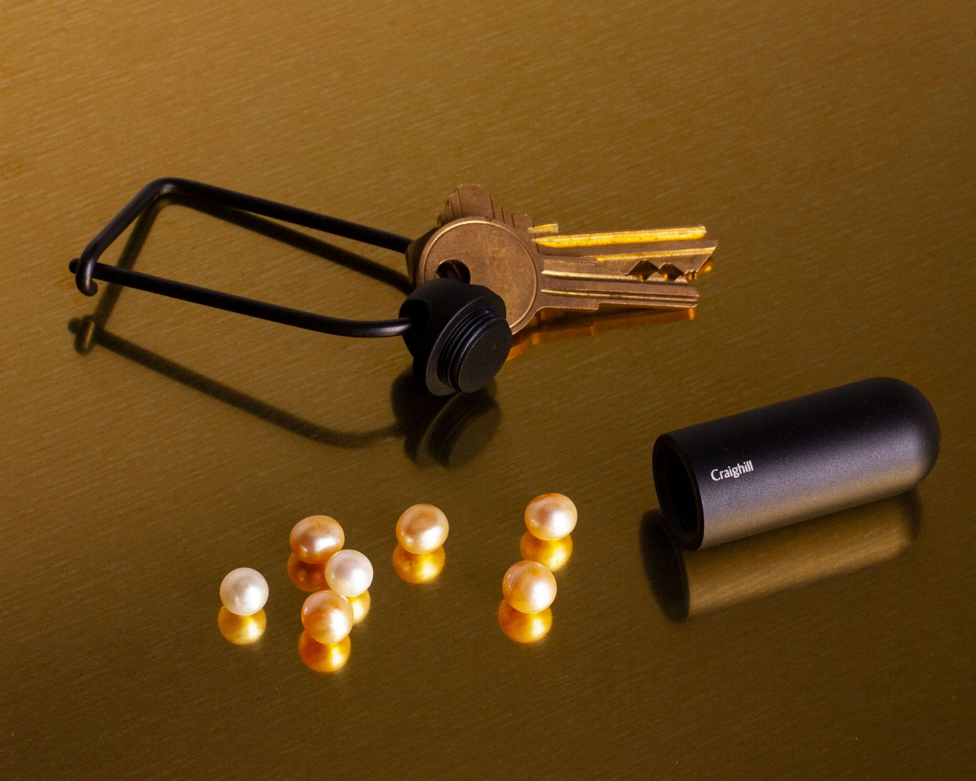 The Key Capsule is a clever, compact container designed to keep your smallest essentials close at hand—no matter where your day takes you. Whether it’s after-breakfast vitamins, after-dinner mints, a couple of pain relievers, or even a rolled-up emergency bill, this little capsule serves as a discreet and convenient pocket companion.