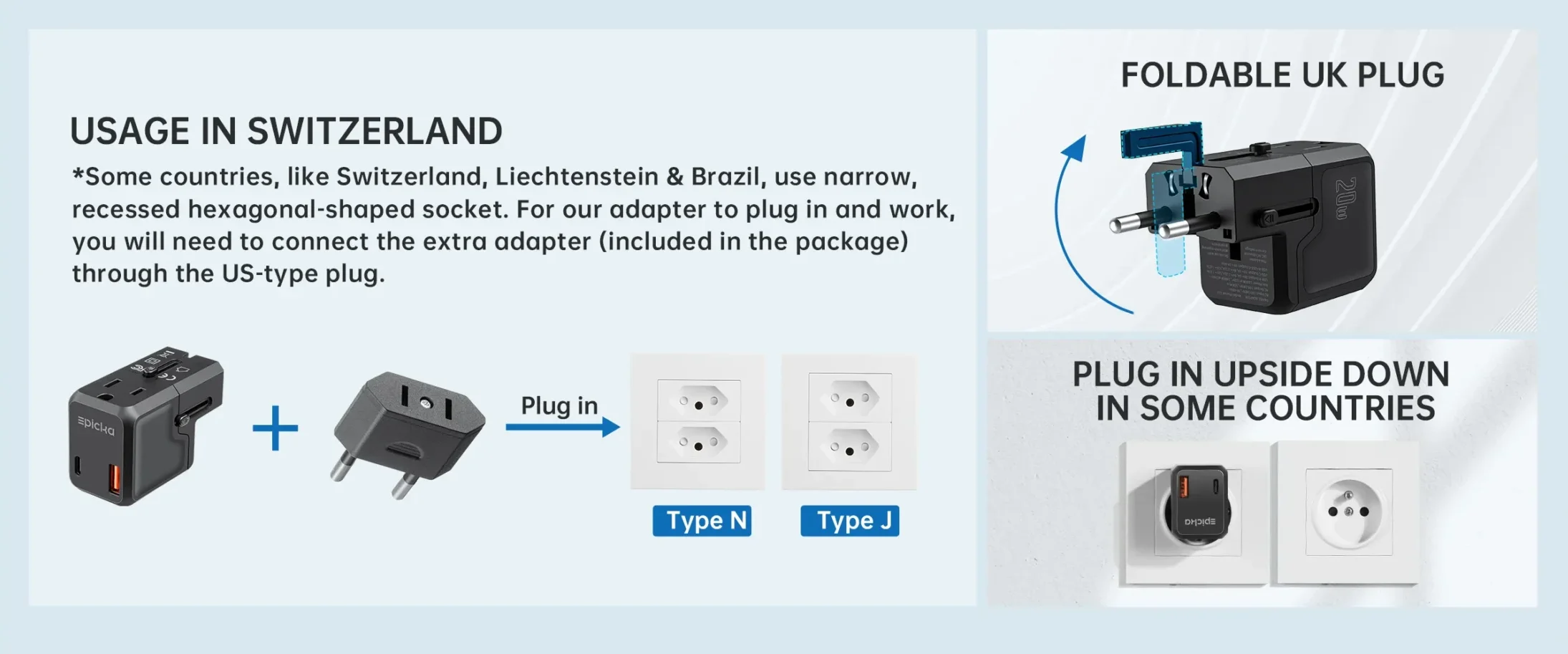 | Inclusions | 1* Pocket 111 Travel Adapter 1* Switzerland, Liechtenstein & Brazil Adapter 1* Carrying Pouch 1* User Manual |