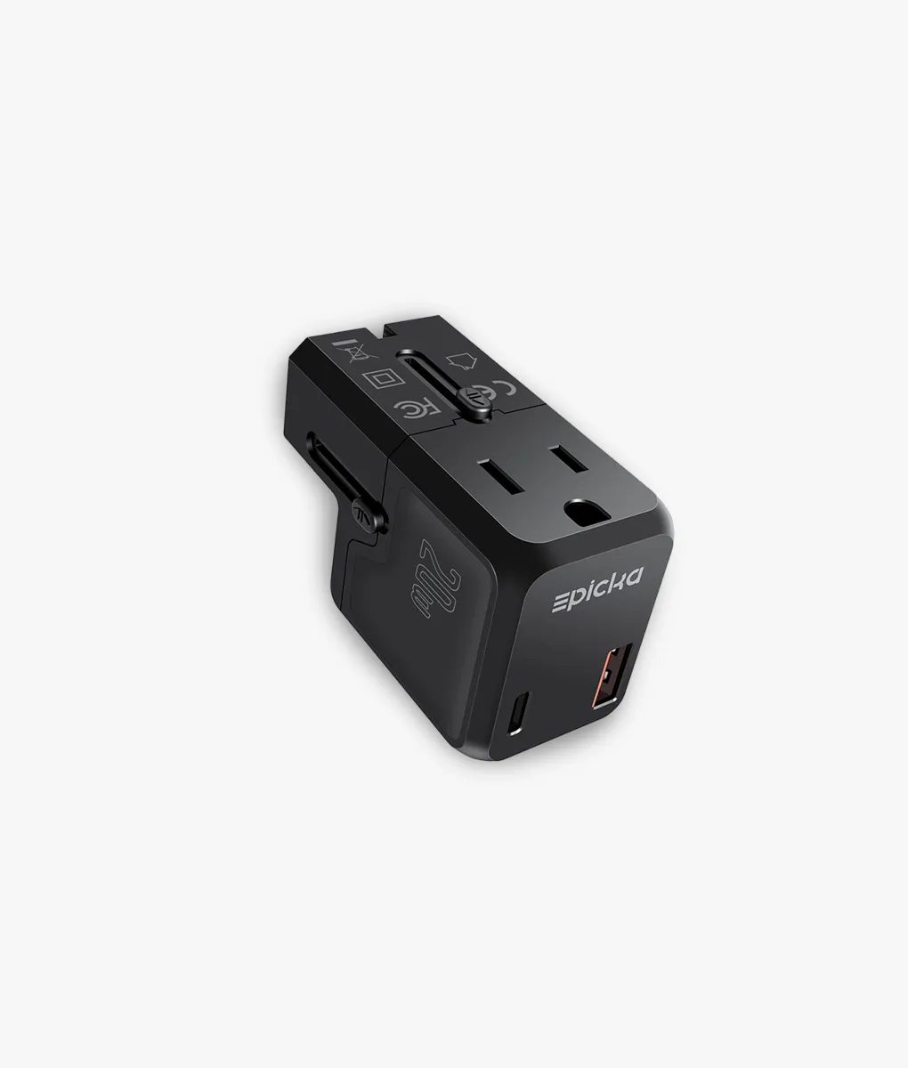 Power up in 200+ countries with 4 plug types and a sleek, pocket-sized design—35% smaller than traditional adapters. Features 20W fast charging via USB-C and USB-A, plus an AC outlet. Built with fire-resistant materials and certified (RoHS, CE, FCC) for safe, cruise-friendly travel.