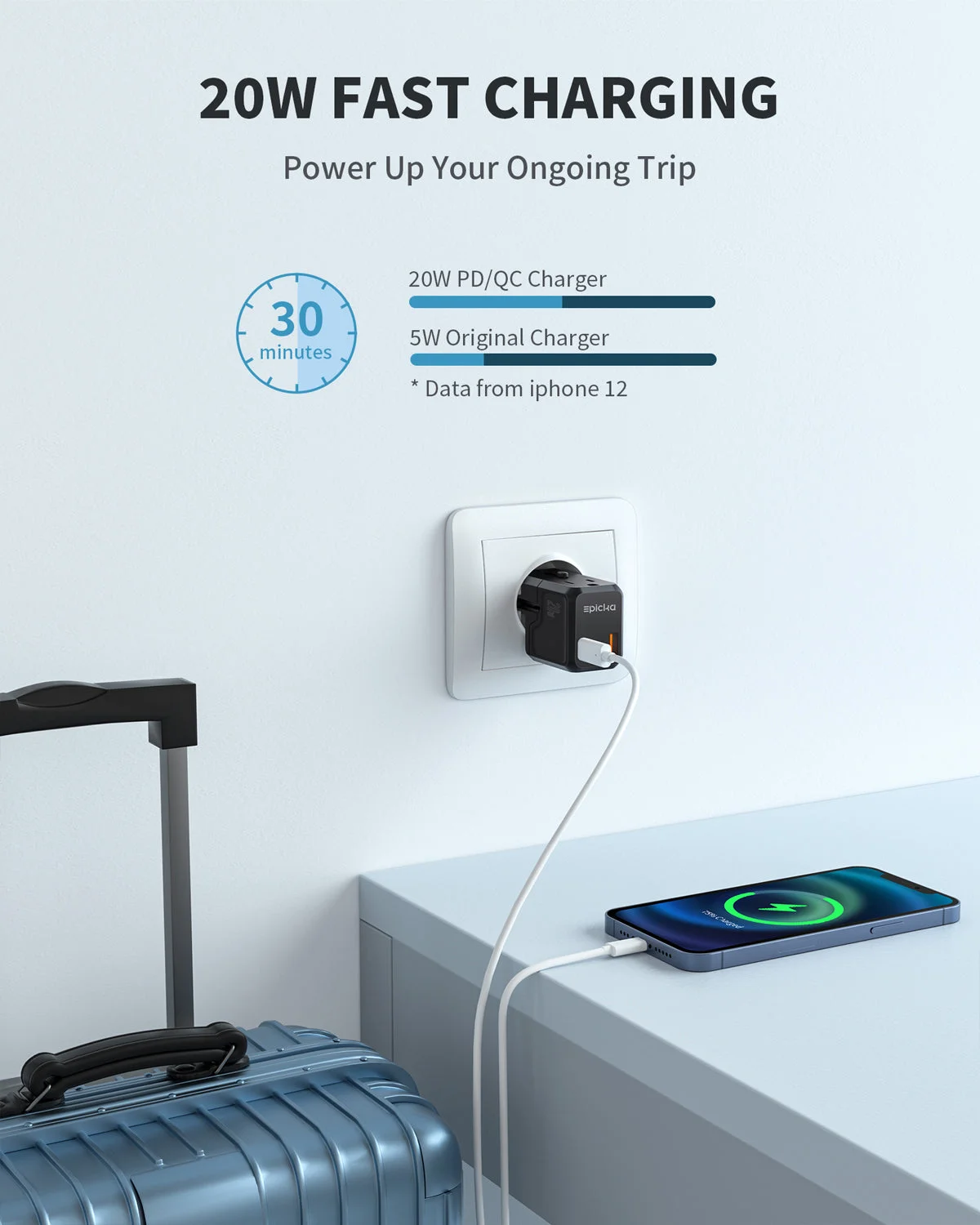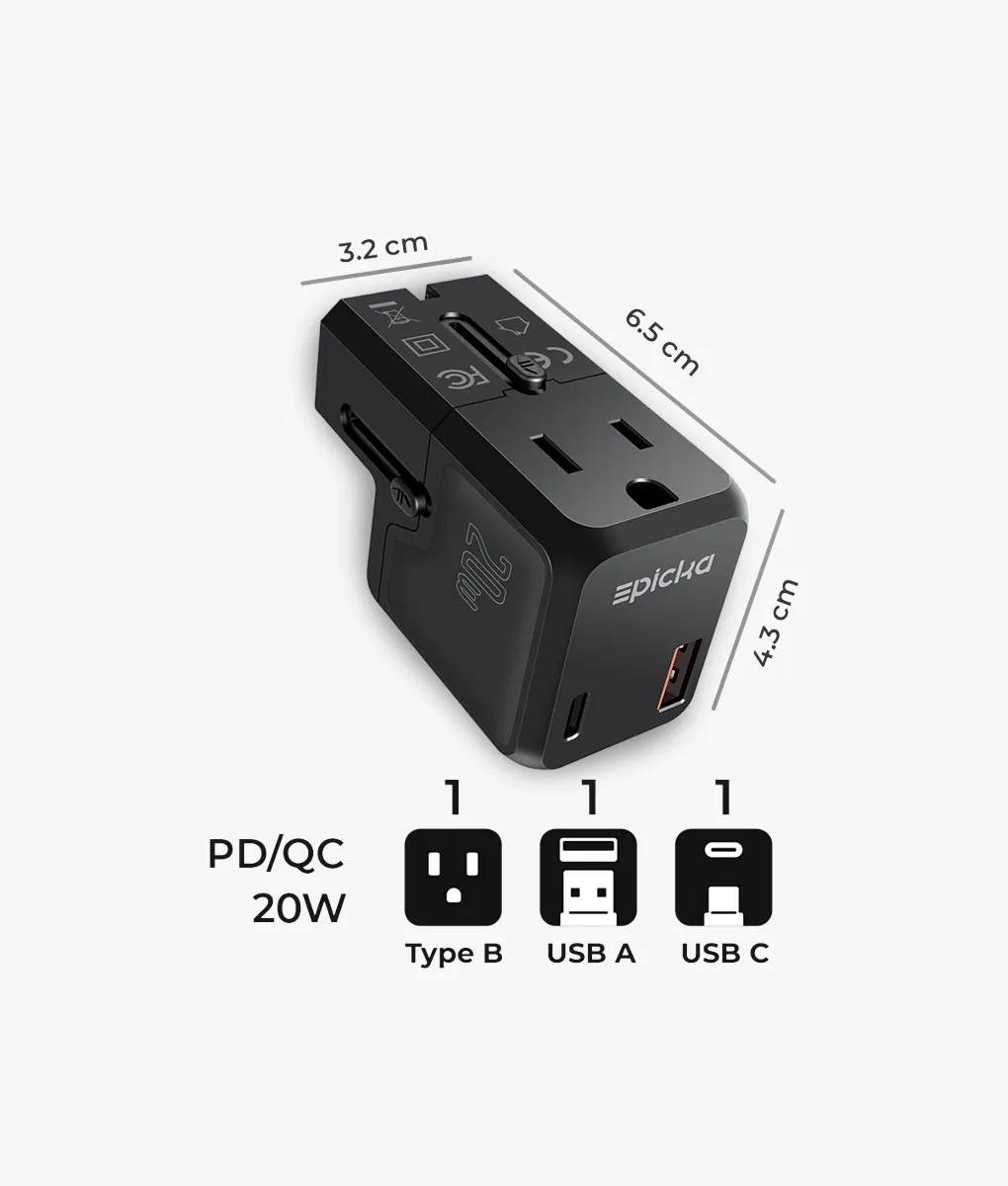 - 20W Fast Charging: This versatile adapter is equipped with a USB-C, a USB-A port and an AC outlet to meet your different demands. Both two USB ports support 20W PD/QC fast charging.