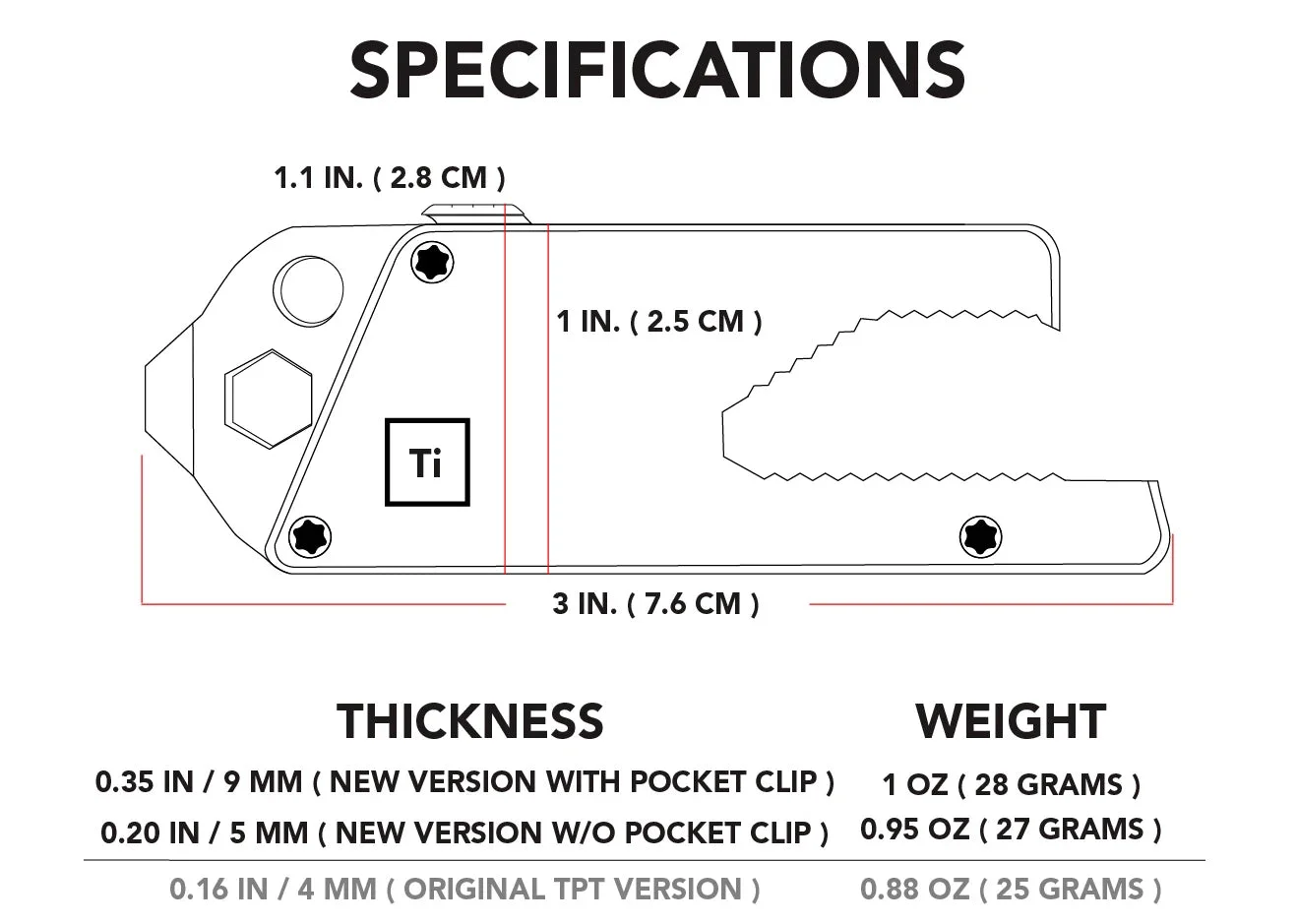 We took our popular TPT (Titanium Pocket Tool) and cranked it up a notch. This TSA-friendly tool packs in a ton of convenient features in a lightweight and portable package.